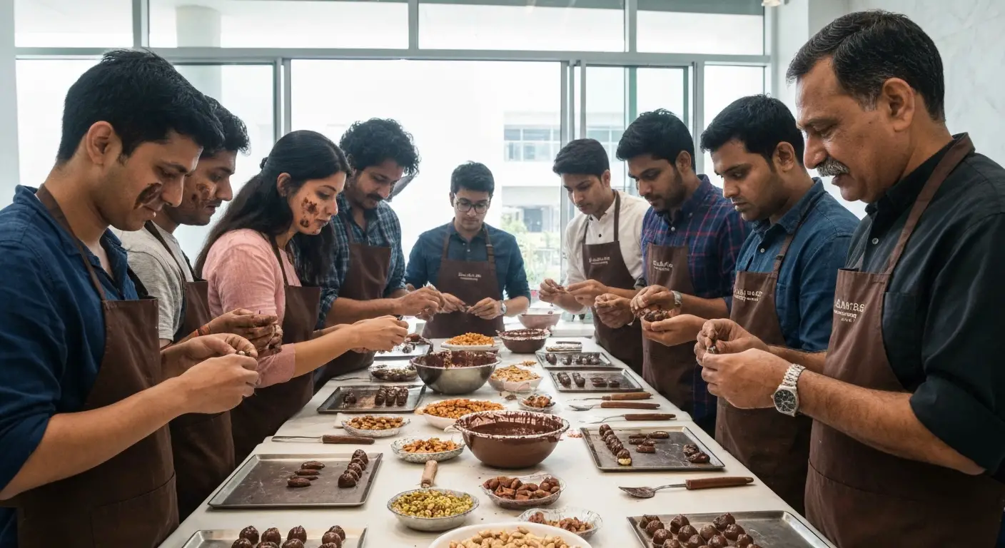 Professional chocolate-making training for aspiring entrepreneurs, homemakers and students with practical skills, business insights, and continuous support.